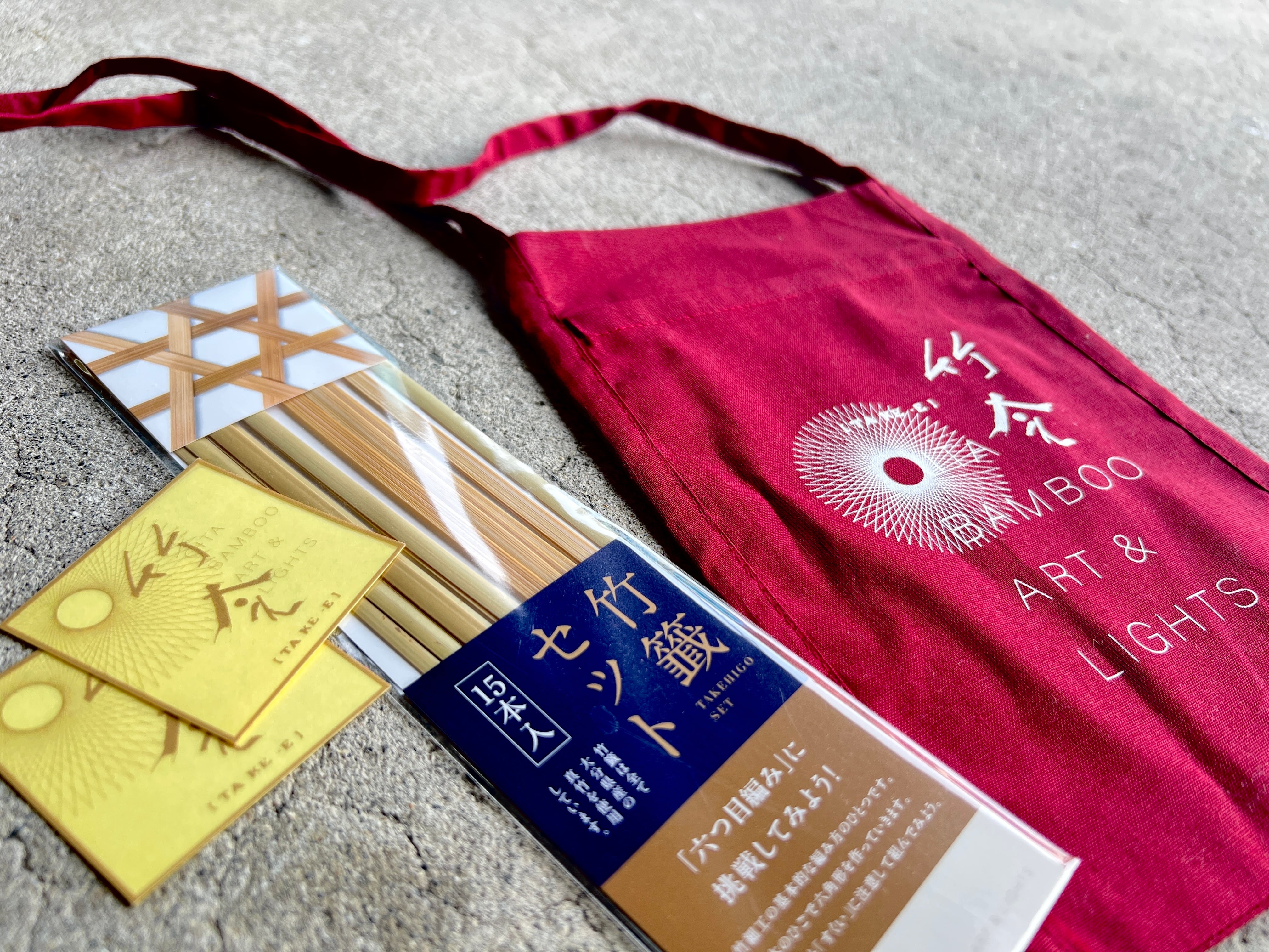 竹籤セットは、大分の竹細工文化に根ざした六つ目編み(六角形の連続模様)を体験できる初心者向けキット。説明カードを見ながら進めれば、コースターや小物置きが気軽に作れます。